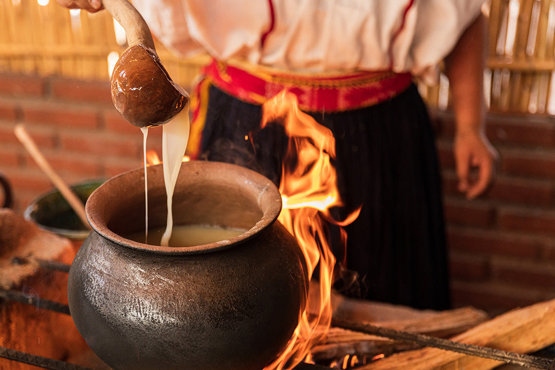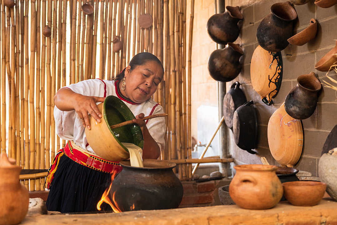 En esta experiencia prepararemos reconfortantes atoles de forma tradicional con el tlaciahual molido en metate, especialmente aprenderemos la receta de un atole salado de la región mixe de Oaxaca.